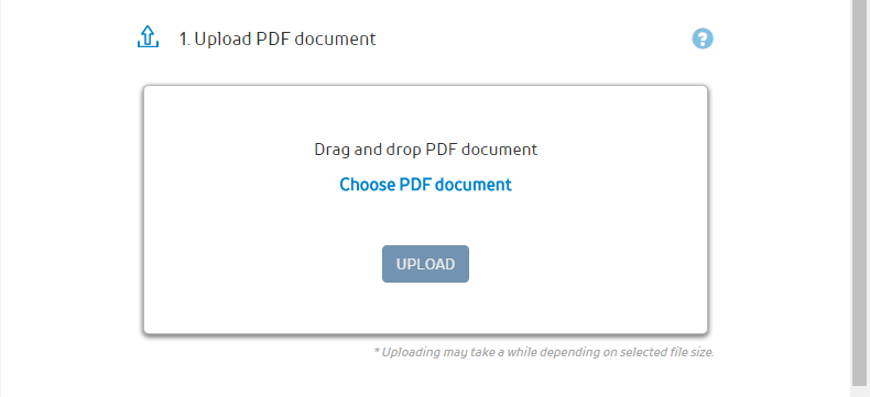 Документ може да се прикачи со користење на методот "Повлечи и спушти (drag and drop)" или со кликнување на копчето „Избери документ“ и со избирање на документ од локалното складиште.