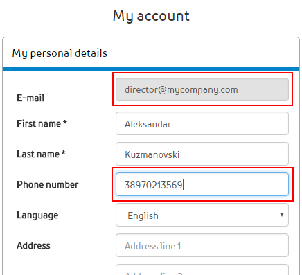 во рамки на формата "Моја сметка / Мои лични детали".