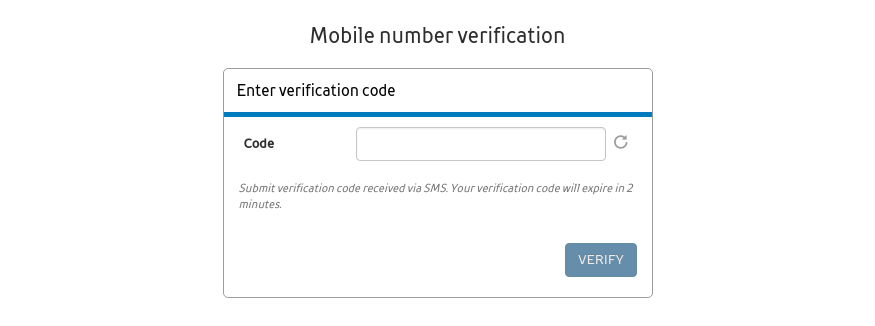 код за верификација добиен преку СМС порака до системот. Откако системот ќе го потврди поднесениот код, корисникот ќе