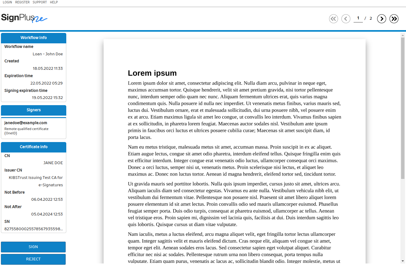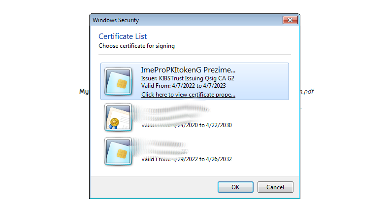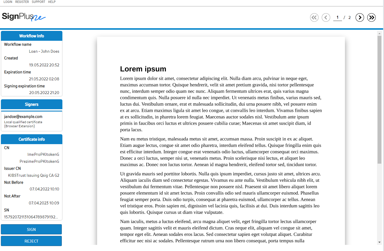 Од потписникот се бара да избере сертификат за потпишување од неговиот USB токен или од софтверскиот безбеден магацин во компјутерот. Документот се вчитува за да се презентира на потписникот со можност да се изберат копчињата Потпиши или Одбиј за да се потпише или не документот.