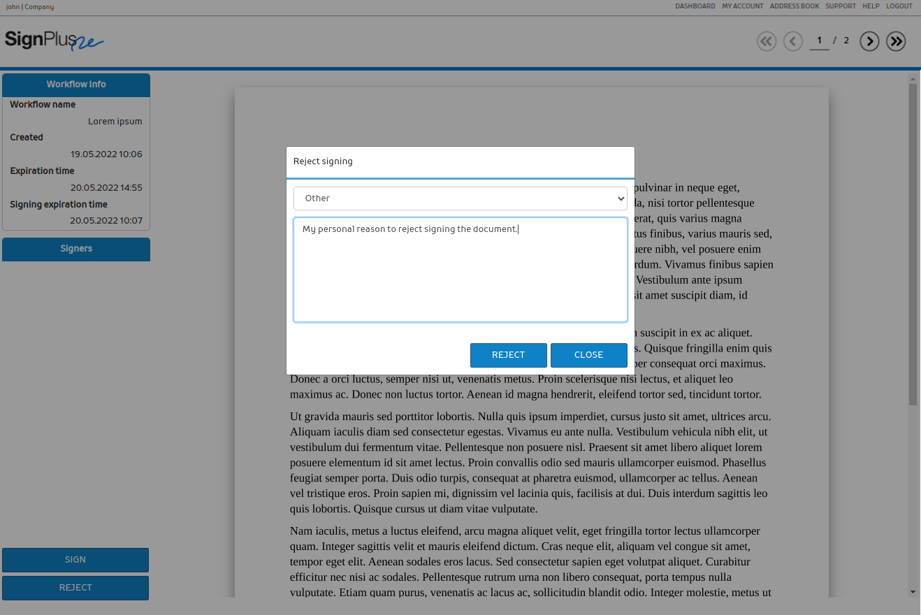 Ако потписникот не сака да го потпише документот, тој има можност да има можност да ја одбие таа акција и да избере причина за оваа своја одлука.